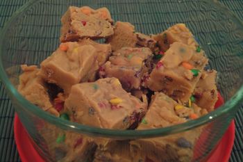 You can watch Tara’s easy-to-follow Almond Butter Fudge video to get more precise measurements, but basically I mixed four big spoonfuls of peanut butter (about half a jar) with approximately 4 tbsp honey, five spoonfuls of chocolate and 1.5 tbps of coconut oil. I let the coconut oil sit in hot water for a 15 minutes to let it get liquidy. Spread the mixture in a cooled square glass dish and pop in the freezer for a couple of hours. Cut into squares and you’re good to go!